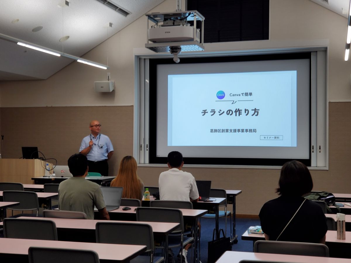 また、創業塾卒業生が産業フェアで配架・上映するチラシや動画の作成を支援するために、9月14日と24日に「チラシ・動画制作ワークショップ」を、テクノプラザかつしかで開催しました(延べ13事業者が参加)。